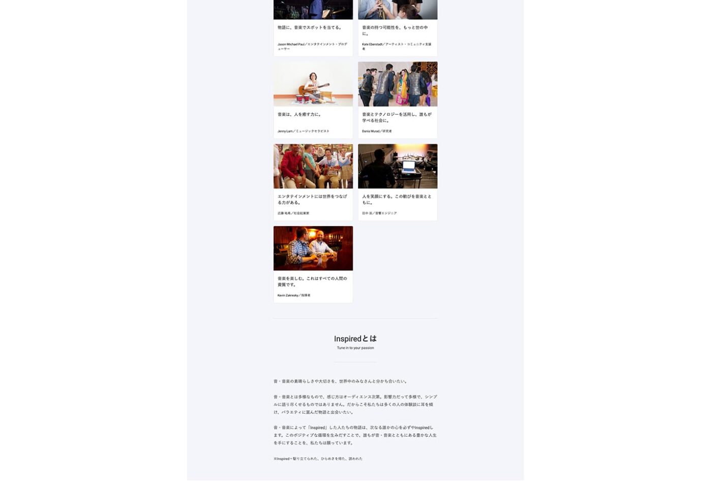 ひと目見た瞬間に、これだと思いました。音や音楽によって駆り立てられた(=Inspired)人々を通じて、音や音楽の力を気づかせてくれる。弊社の理念を伝えるコンテンツにピッタリで、一般の方々だけでなく、社員自身もInspireされるコンテンツにしたかったんです。先日も取材対象者から「Inspireされました」と言われて感慨深かったですね。