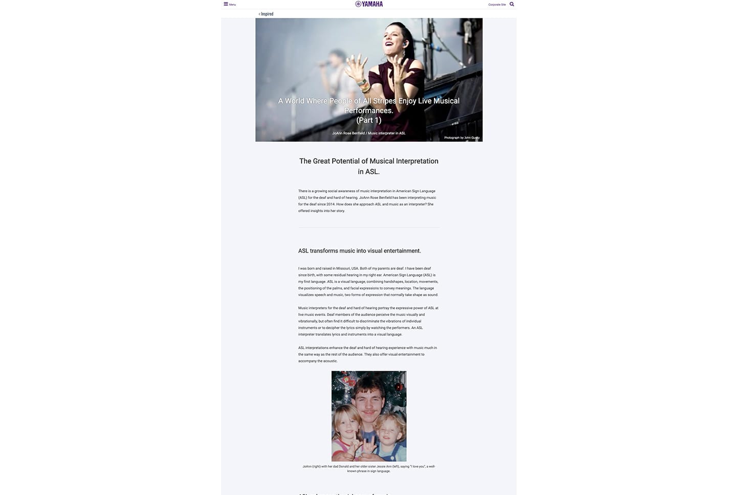 実際に「このようなコンテンツを作るには、どうすればいいんですか?」という問い合わせもいただきます。あえて答えるならば、継続してメッセージを発信し続けることではないでしょうか。 「Inspired」にも「音や音楽の素晴らしさを、世界中のみなさんと分かち合いたい」というメッセージがあります。回を増すごとに、メッセージ性は際立ってきました。記事が10本超えたあたりから厚みも生まれ、存在感が増したように感じています。今後も「Inspired」を通じて、音・音楽の力を考えていきたいですね。