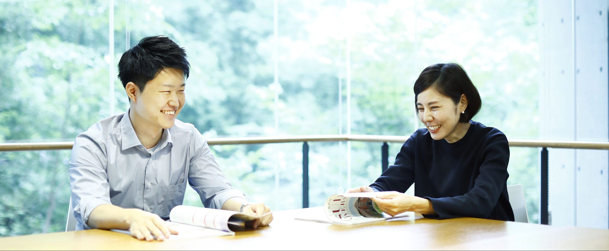 津田塾大学のガイドブック制作を主導した、経営企画課の河野友香様と赤石明大様。企画提案、ディレクション、インタビュー記事の取材・執筆など、9カ月におよぶプロジェクトを通じて感じた弊社に対する印象を、率直に語っていただきます。