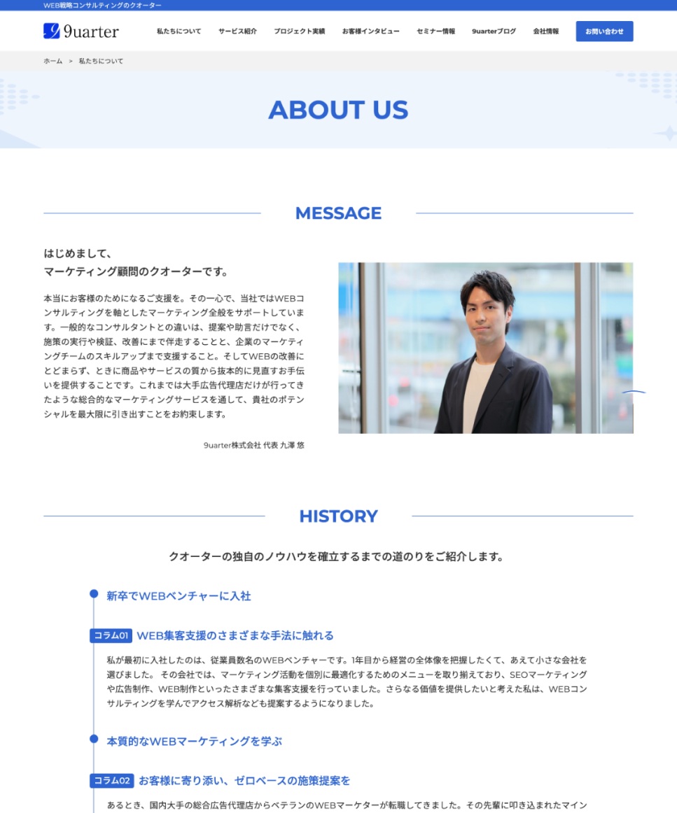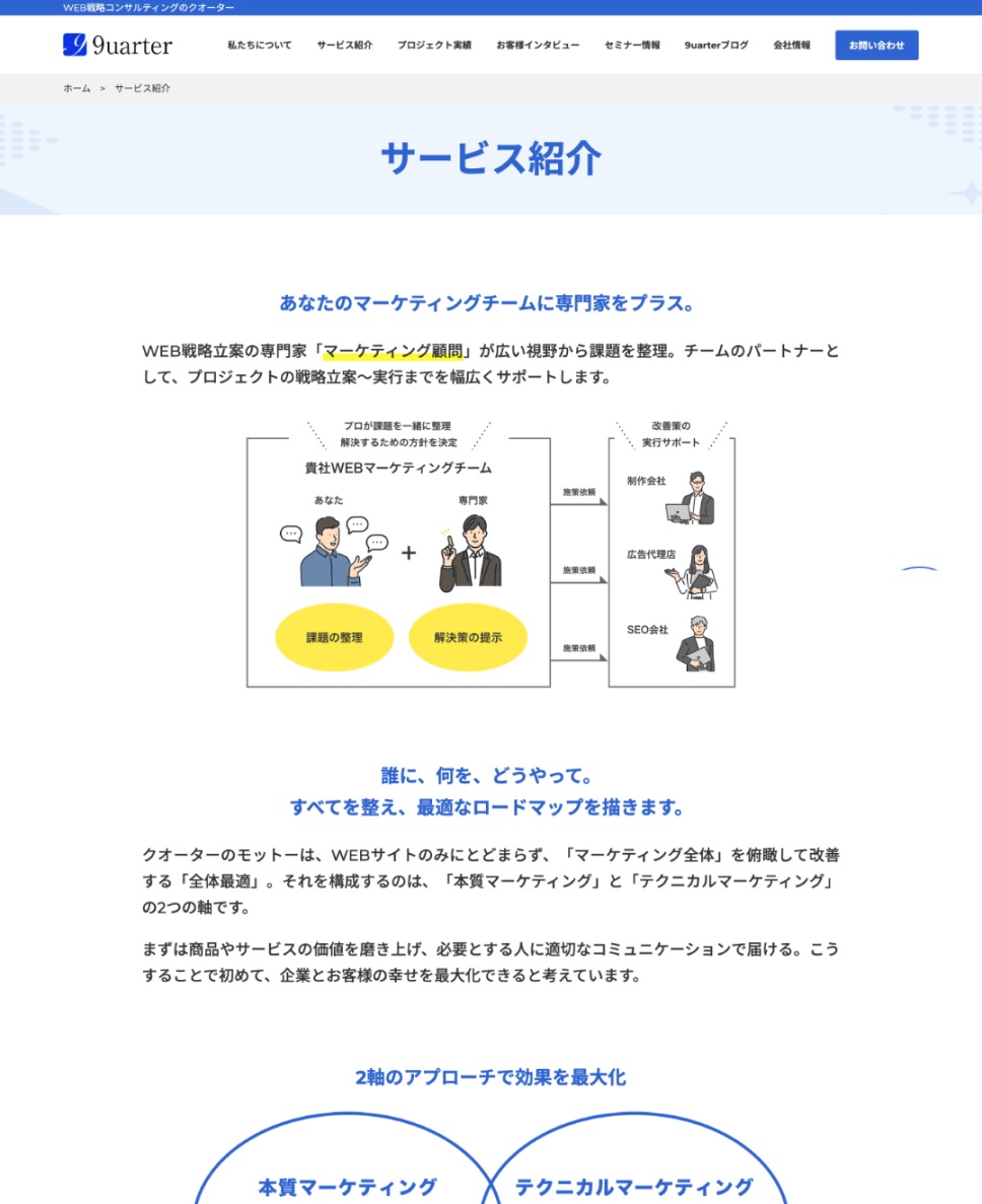 少数精鋭のベンチャーから大手上場企業まで、さまざまな企業の「マーケティング顧問」として、その戦略を支援している9uarter株式会社。特にウェブサイトの支援で多くの実績をお持ちです。そんなエキスパートから、コーポレートサイト改修のパートナーとしてご指名いただきました。プロジェクトの成果を、代表の九澤さんに振り返っていただきます。