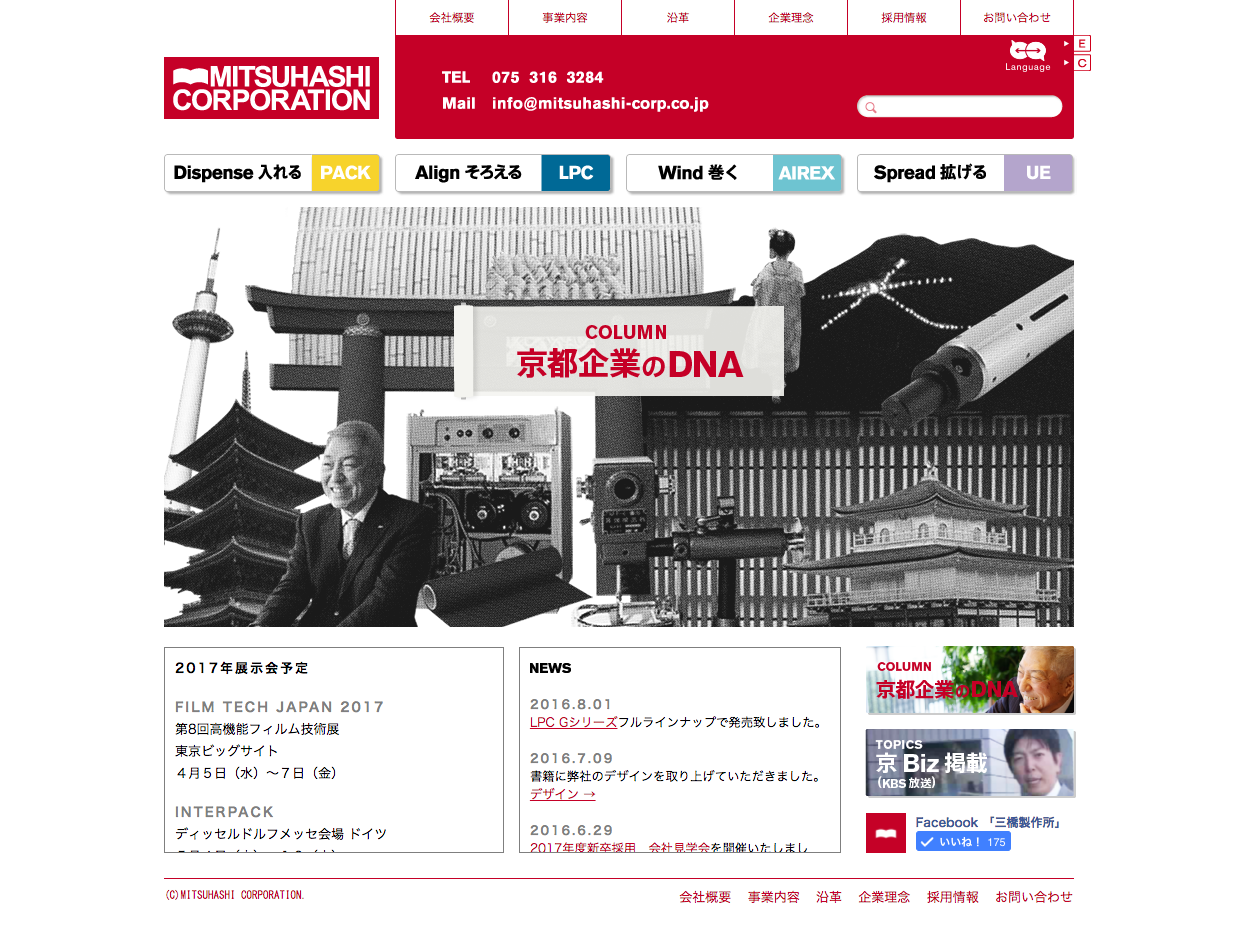 株式会社三橋製作所Webコンテンツ企画・制作編集執筆 AD/D 株式会社SKG コンテンツ企画・取材・執筆:株式会社フリッジVisit Website 制作実績一覧 京都を拠点として長年に渡って活動する株式会社三橋製作所様のDNAをアピールするスペシャルコンテンツの企画・取材・執筆を担当しました。