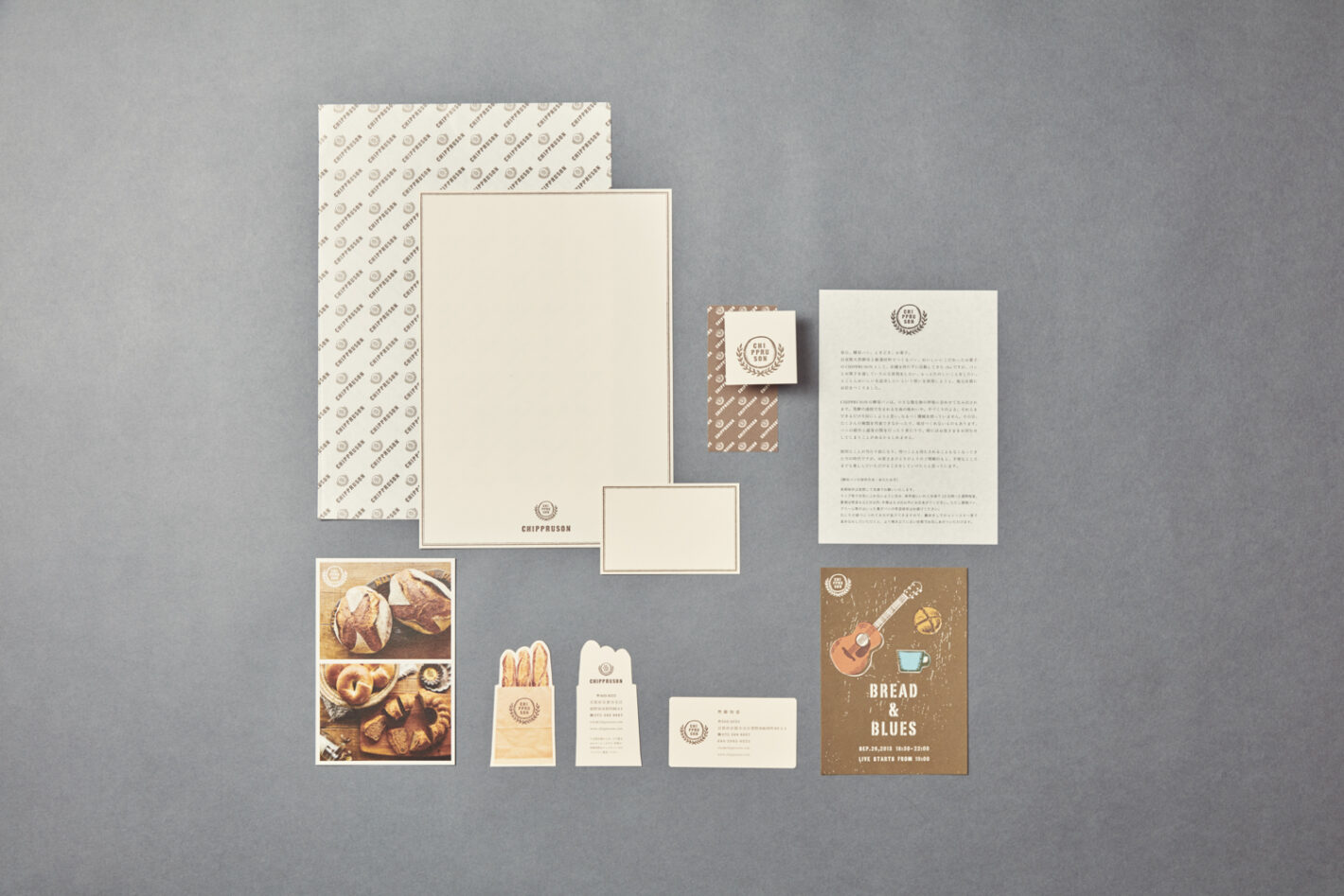 京都市北区にCHIPPRUSONがオープンしたのは2013年、オープンに合わせてロゴ、ショップカード、ラッピング素材などのデザインを担当しました。2021年、右京区に移転するタイミングで、新たなラッピングペーパーやカード等を制作。