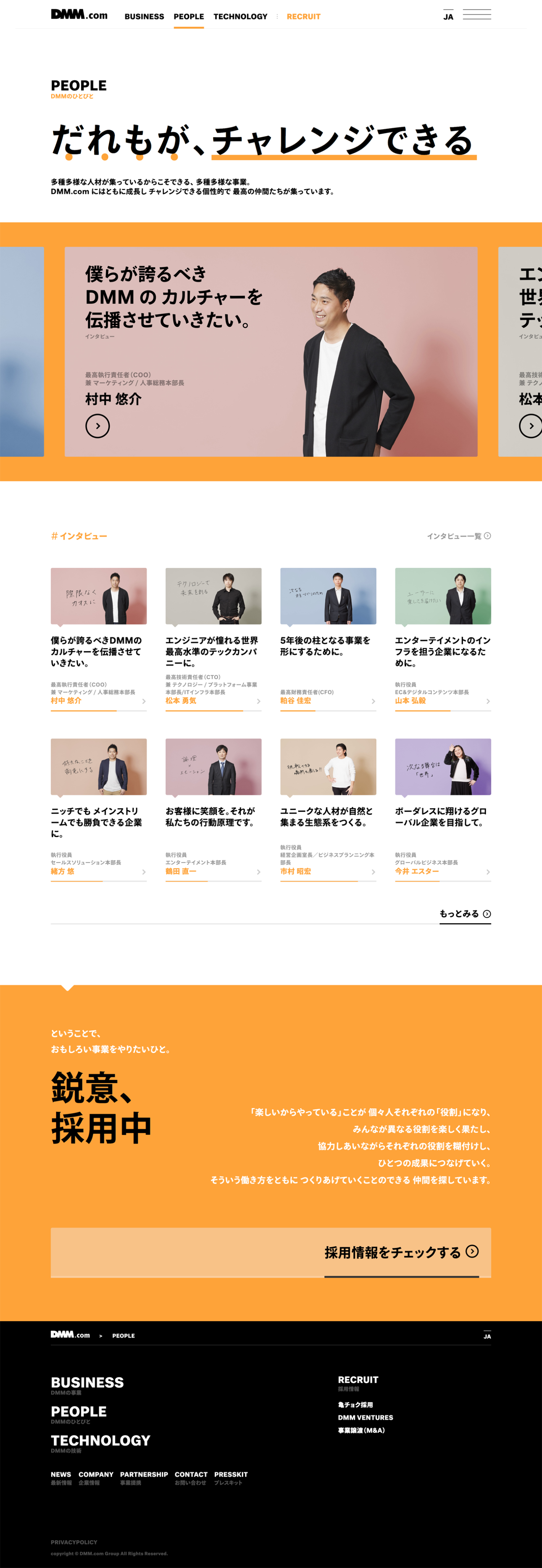 合同会社 DMM.com のコーポレートサイトに登場する取締役、事業部長たちのインタビュー、執筆ほか、いくつかのコピー執筆や、編集作業などを担当しました。