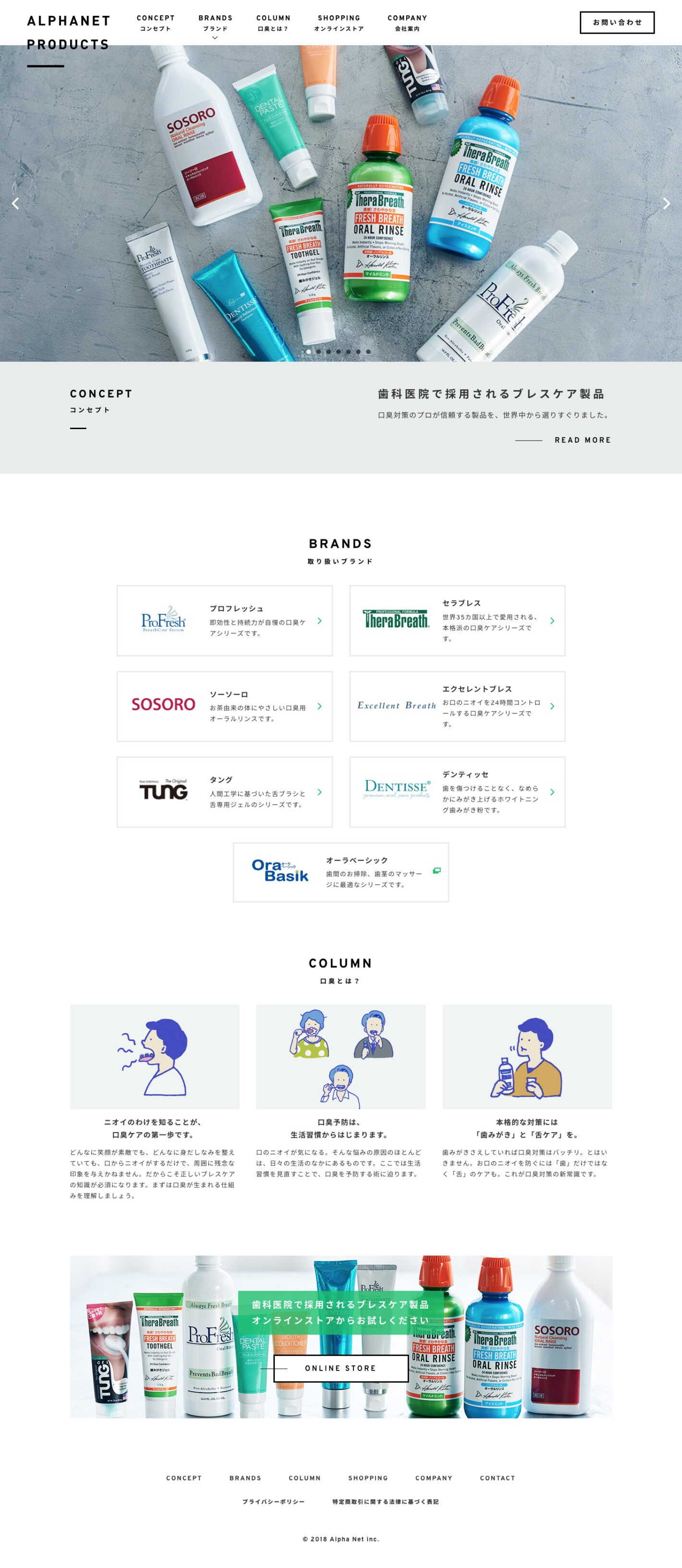 株式会社アルファネット製品サイト企画・制作編集執筆デザイン 執筆・編集:株式会社フリッジ Webデザイン/コーディング:中山海里Visit Website 制作実績一覧 ブレスケア製品を取り扱うアルファネットのWebサイトをリニューアル。ディレクション、コンテンツの再編集、新規執筆、デザインなどをお手伝いさせていただきました。