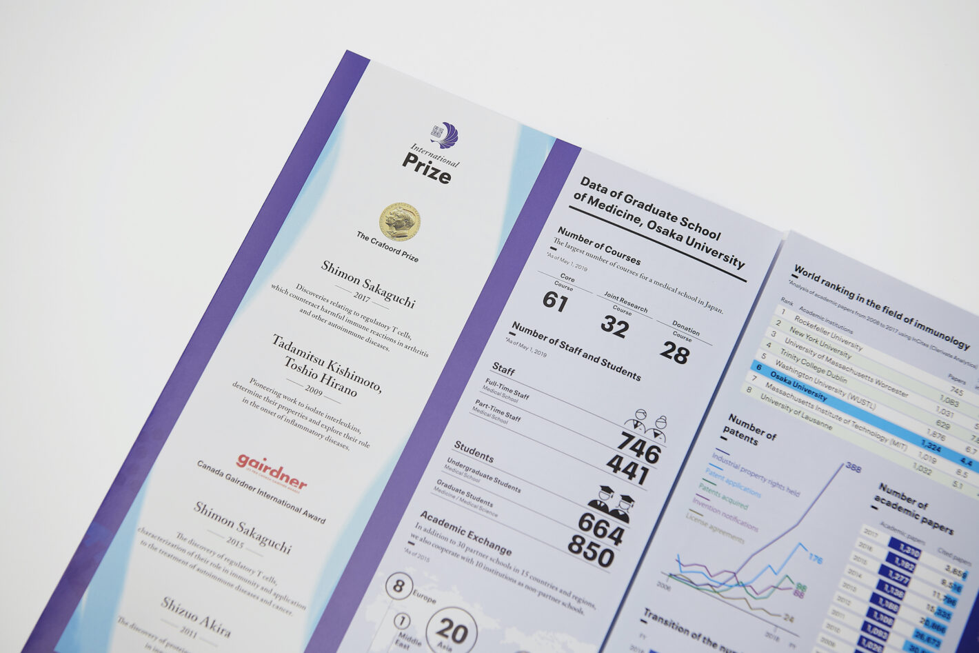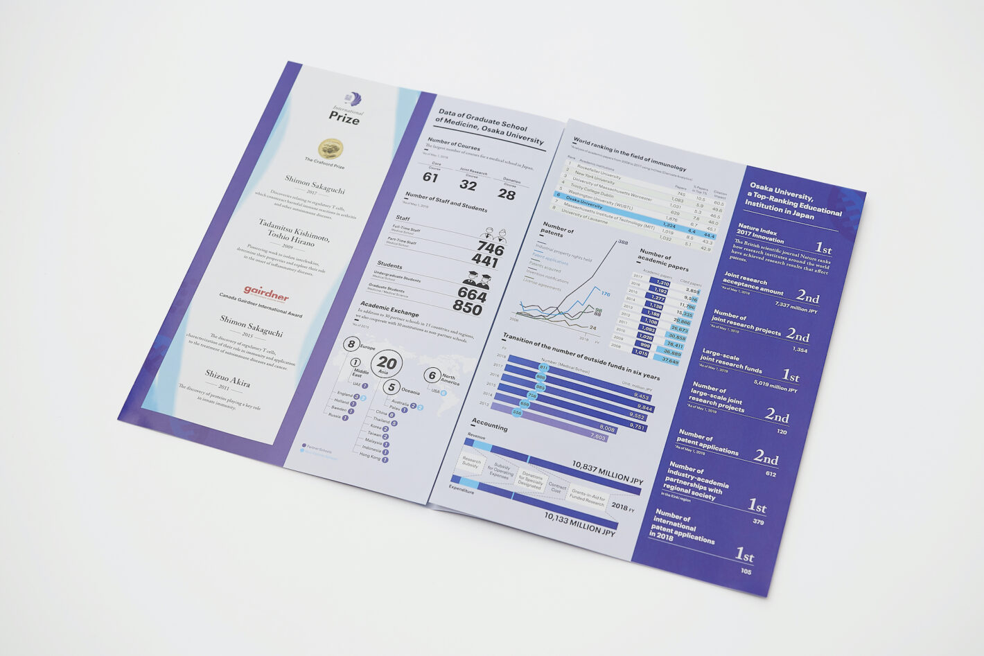 大阪大学医学系研究科・医学部海外向けパンフレット企画・制作編集執筆デザイン大学関係 企画・編集・執筆:株式会社フリッジ AD/D/Infographics:株式会社ボウルグラフィックス 制作実績一覧 大阪大学医学部の研究実績がインフォグラフィックスとコピーとでスピーディに伝わるパンフレットの、企画・制作、執筆、デザインまで全体を担当させていただきました。