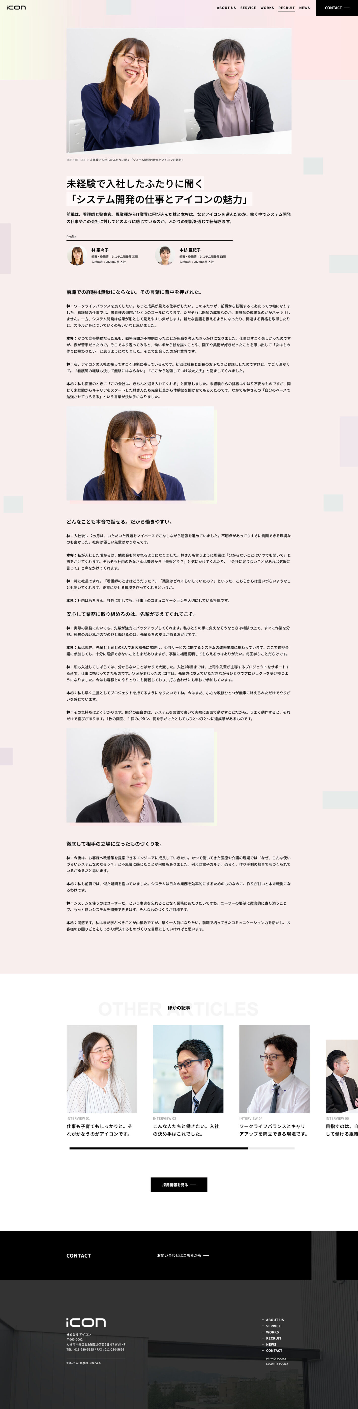 コーポレートステイトメントの開発から、Webサイトのリニューアルまでトータルでお手伝いさせていただきました。取材・撮影のみ株式会社アイコンが拠点とする札幌で、その他の打ち合わせや実制作はすべて首都圏で行っています。