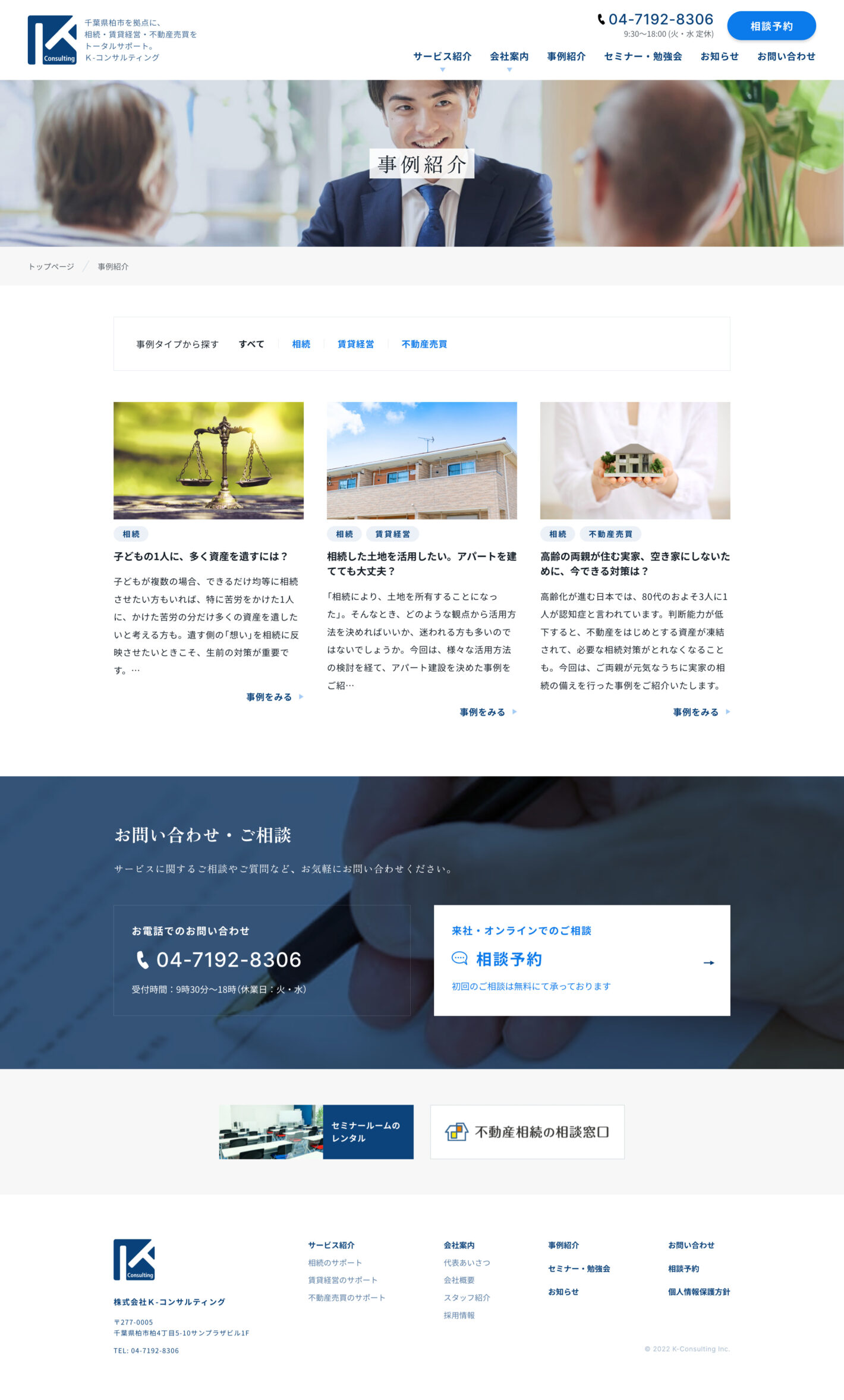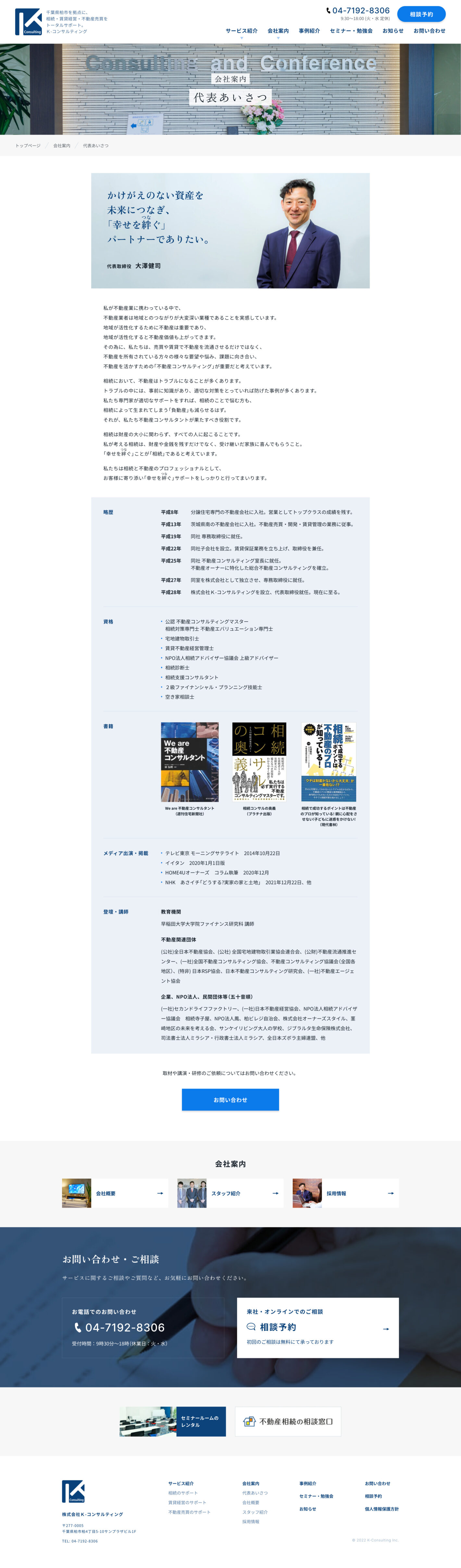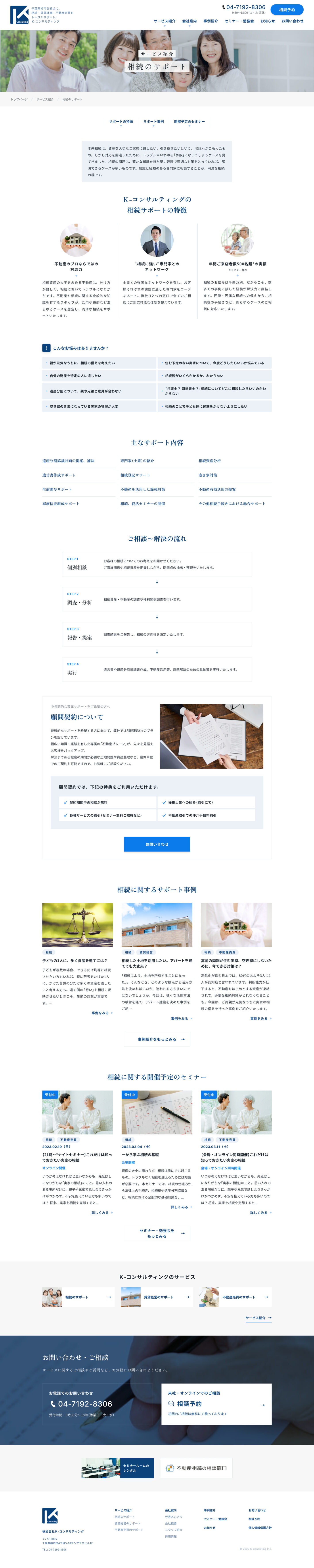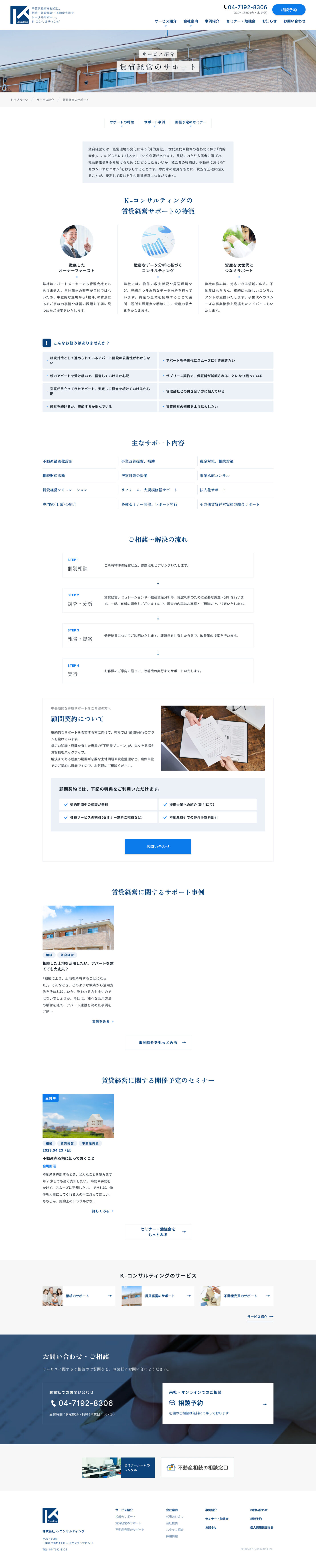 千葉県柏市を拠点として、相続、賃貸経営、不動産売買についてのトータルサポートを行うK-コンサルティング様のコーポレートサイトの制作を担当しました。
