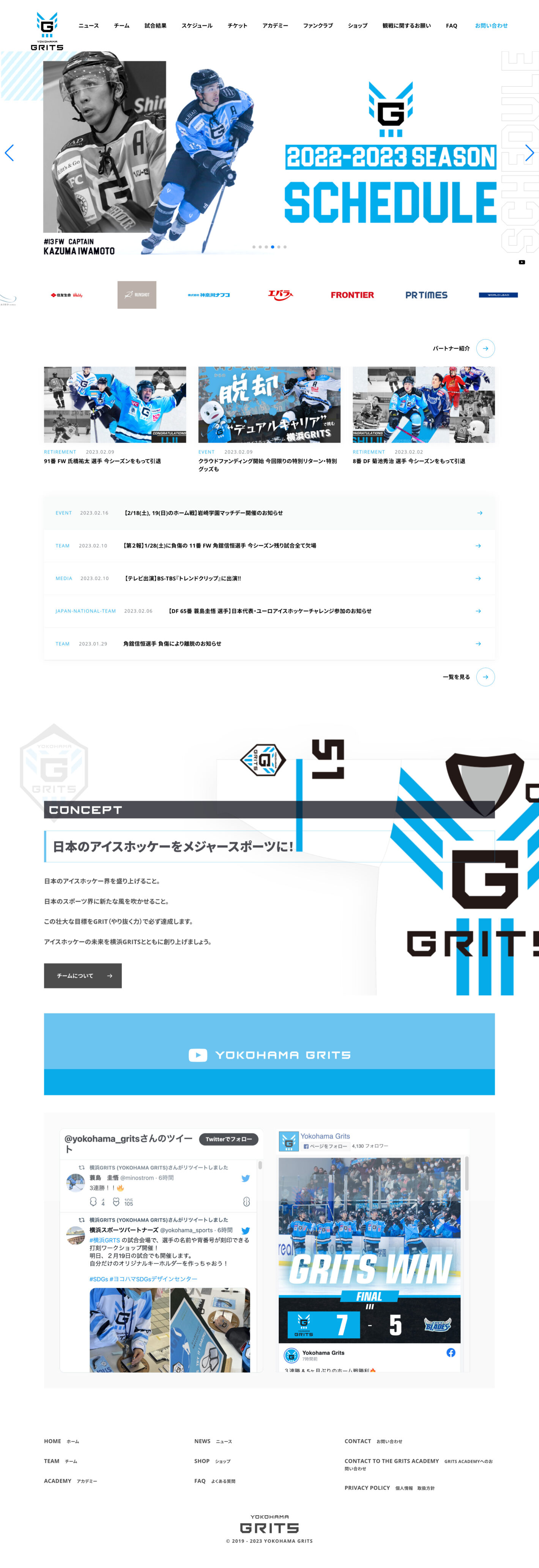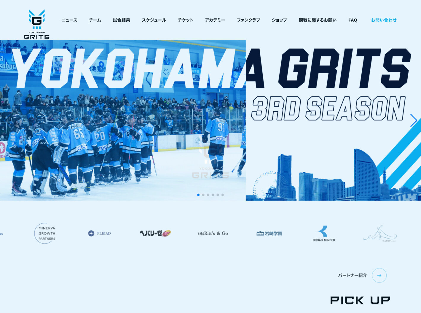 2019年に横浜に誕生したアイスホッケーチーム、横浜GRITSのWebサイトの制作を担当しました。チームロゴ、ユニホームなどの制作も行いました。