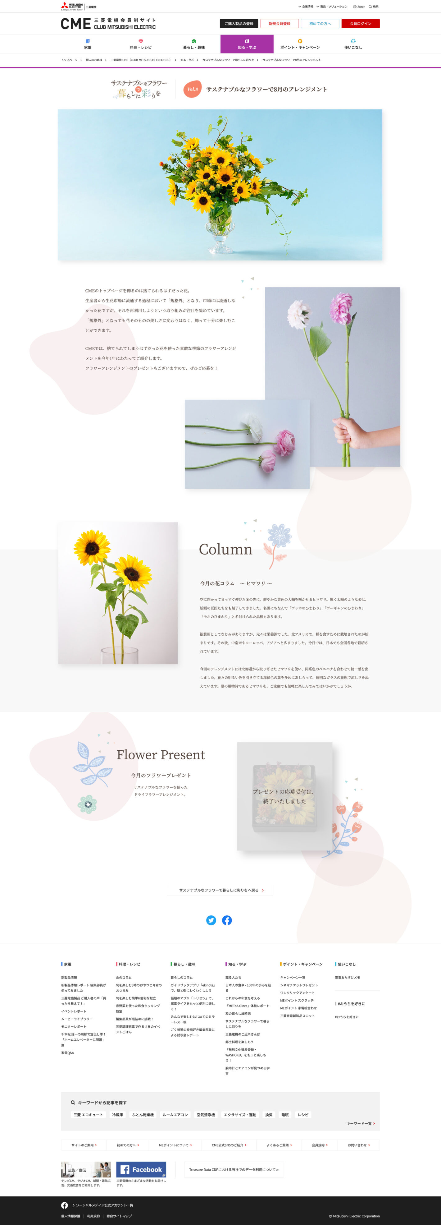三菱電機会員制サイトCLUB MITSUBISHI ELECTRICにて、ロスフラワーをテーマにしたビジュアル制作を担いました。合わせて毎月テーマとなったお花に関するコラムの取材・執筆も担当。2022年の春から12月にかけて全7回になります。