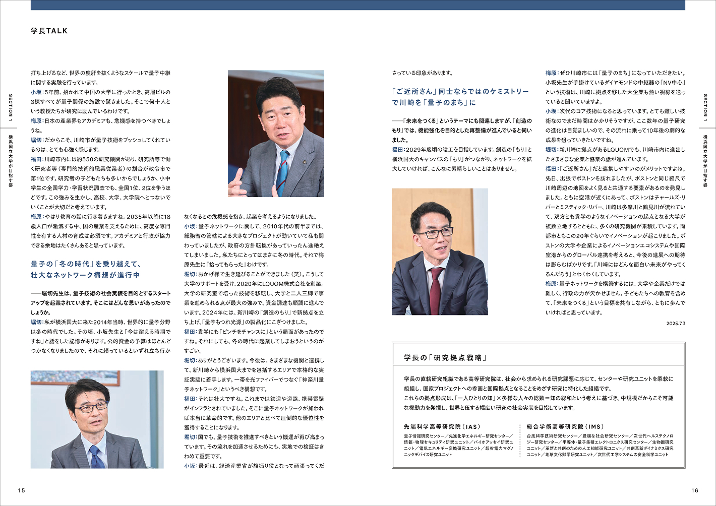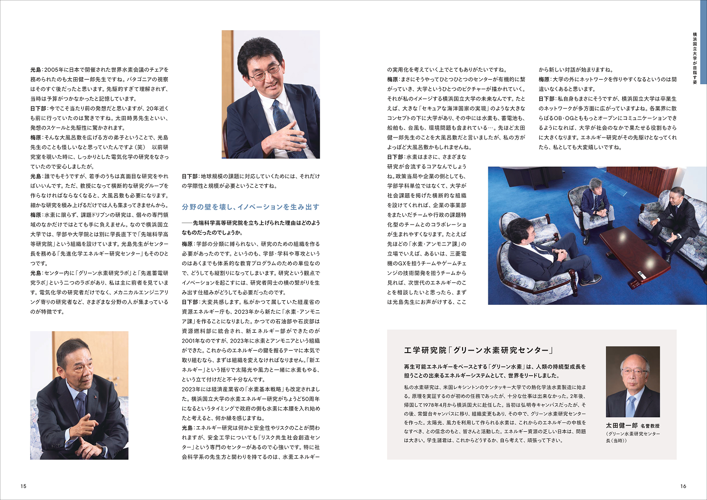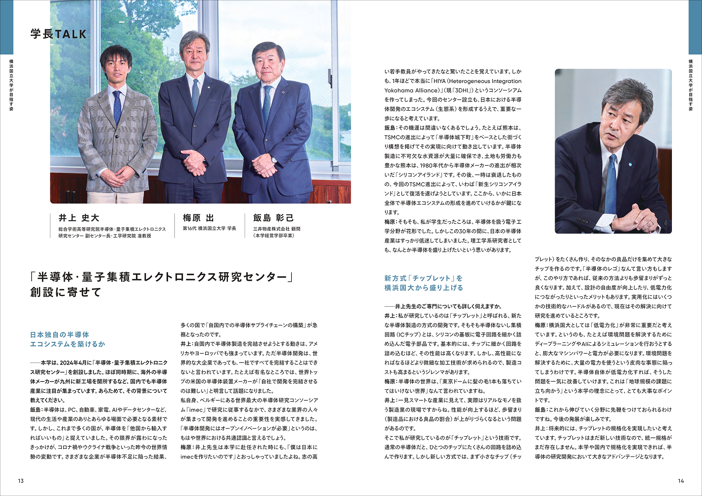 横浜国立大学の統合報告書「学長TALK」の取材・執筆を、2023年より担当しています。大物ゲストをお招きしての鼎談では、ときに専門的な内容にまで踏みこむことも珍しくありませんが、統合報告書というメディアの性質を意識して、なるべく平易な言葉で一般の人にもわかりやすく伝えることを心がけています。